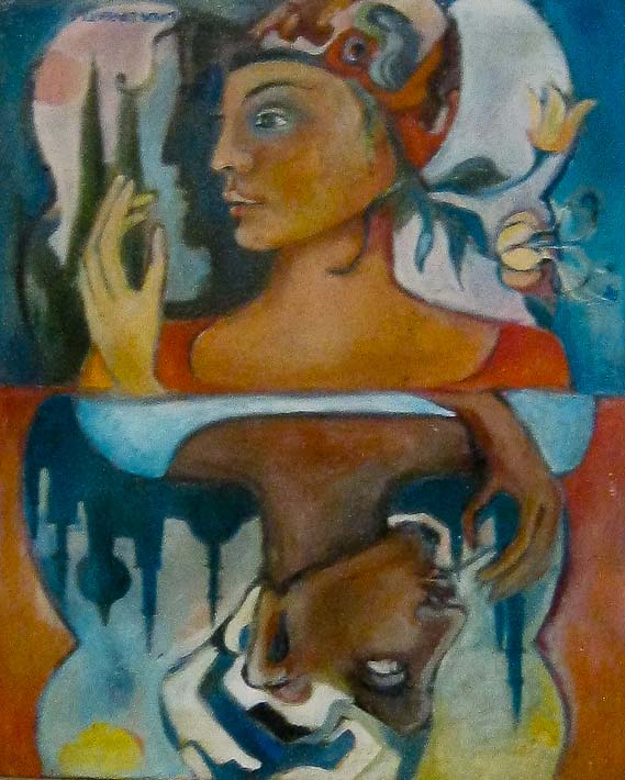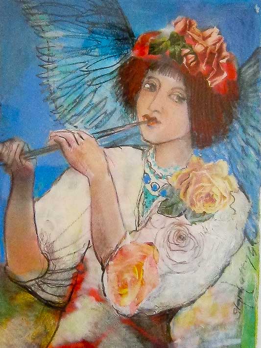 Zum Genuss von Tabak und Rum gehörte damals auch das Kartenspiel. Die Vielfalt der Spielkarten und der Accessoires ist im Spielkartenmuseum (museo de naipes) in Alt-Havanna zu bewundern. Vom 13. Januar bis zum 24. Februar 2012 wurde mit meinen Bildern (13 Collagen im A3-Format) zum Thema „La magia en los naipes en la pintura de Linda Starbatty“ erstmalig eine Ausstellung in diesem Museum gezeigt. Die Spielkarten verschiedenen Formats beinhalteten Prinz-und-Prinzessin-Problematik, Magie des Tarot, Engelwesen, Porträts von Magiern. Die Einladungen zur Vernissage waren selbstentworfene Spielkarten und wurden im Sinne des Gesamtkunstwerks mit Wein, Rum und Performance angeboten. Zum Flötenspiel des vergoldeten Musikers tanzte ich, um ein magisches Ambiente für die Besucher zu erzeugen. ◊ |